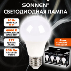 Батарейки КОМПЛЕКТ 4 шт., SONNEN Alkaline, AAA (LR03, 24А), алкалиновые, мизинчиковые, в блистере, 451088